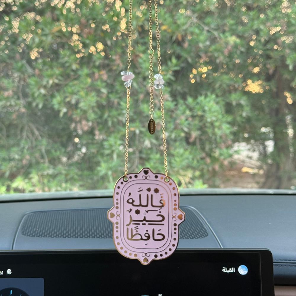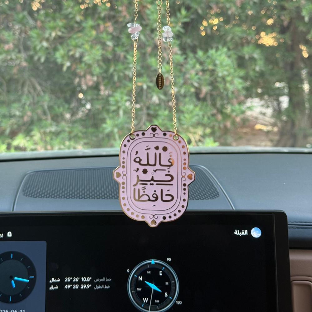 اختيارك لتعليقة السيارة "فالله خير حافظاً" باللون الذهبي والوردي يعكس تميزك ورغبتك في أن تكون محاطًا بالحماية والجمال في كل رحلة. اجعلها رفيقتك الدائمة في السيارة لتعيش تجربة قيادة مليئة بالأناقة والسكينة.