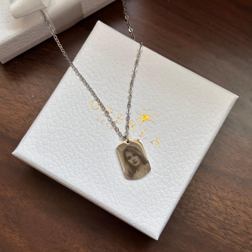 قلادة الصورة الفضي من أوبيرلا A صغير فضي تقدم لمسة أنيقة وفريدة بتصميمها العصري والبسيط ويمكنك تخصيصها بنحت صورة أو اسم حسب الطلب مما يجعلها قطعة مثالية للاستخدام الشخصي.